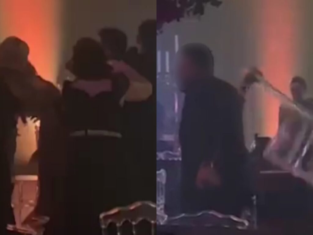 Em vídeos que circulam nas redes sociais, é possível ver que o dia já havia amanhecido, quando um homem de terno e gravata arremessou uma cadeira. Em seguida, ele foi agredido com um murro por outro homem.