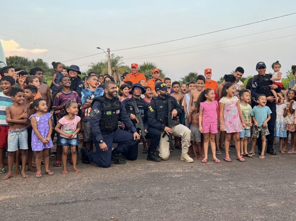 A Guarda Municipal de Araguaína (GMA), em parceria com o Corpo de Bombeiros Militar (CBM) e a Polícia Rodoviária Federal (PRF), promoveu uma ação especial de distribuição de doces e brinquedos para as crianças da da cidade, no norte do Tocantins.
