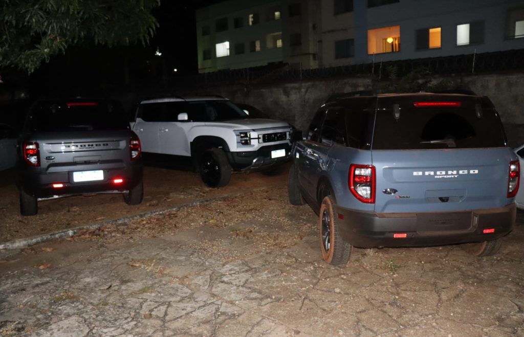 Durante as ações da Operação Perfídia foram apreendidos quatro veículos, ano 2025, sendo dois modelo Ford Bronco, uma camionete BYD Shark e uma camionete Ford Ranger. Conforme explica o delegado-chefe da 1ª DEIC, Wanderson Chaves de Queiroz, todos os veículos teriam sido adquiridos pelo grupo criminoso com o dinheiro desviado das duas construtoras e estão avaliados em mais de R$ 1 milhão.