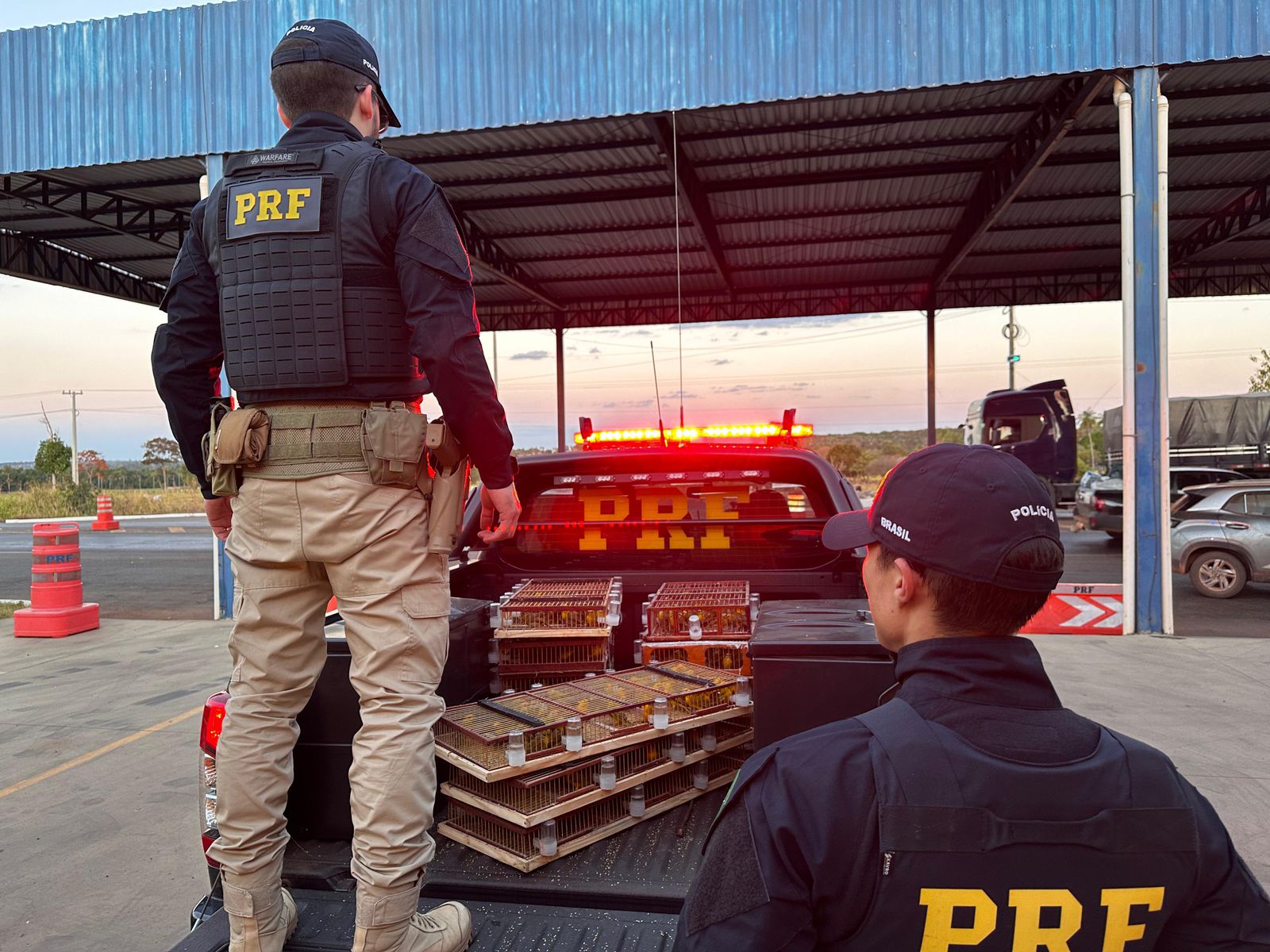 Durante uma fiscalização de rotina na BR-153, os agentes abordaram o veículo — que havia sido alugado — e encontraram, no porta-malas, dezenas de gaiolas lotadas, sem ventilação, além de bolsas de viagem contendo aves vivas. Segundo a PRF, muitas estavam em compartimentos fechados ou abafados, sem qualquer condição adequada de transporte. A situação foi classificada como grave e configurou maus-tratos.